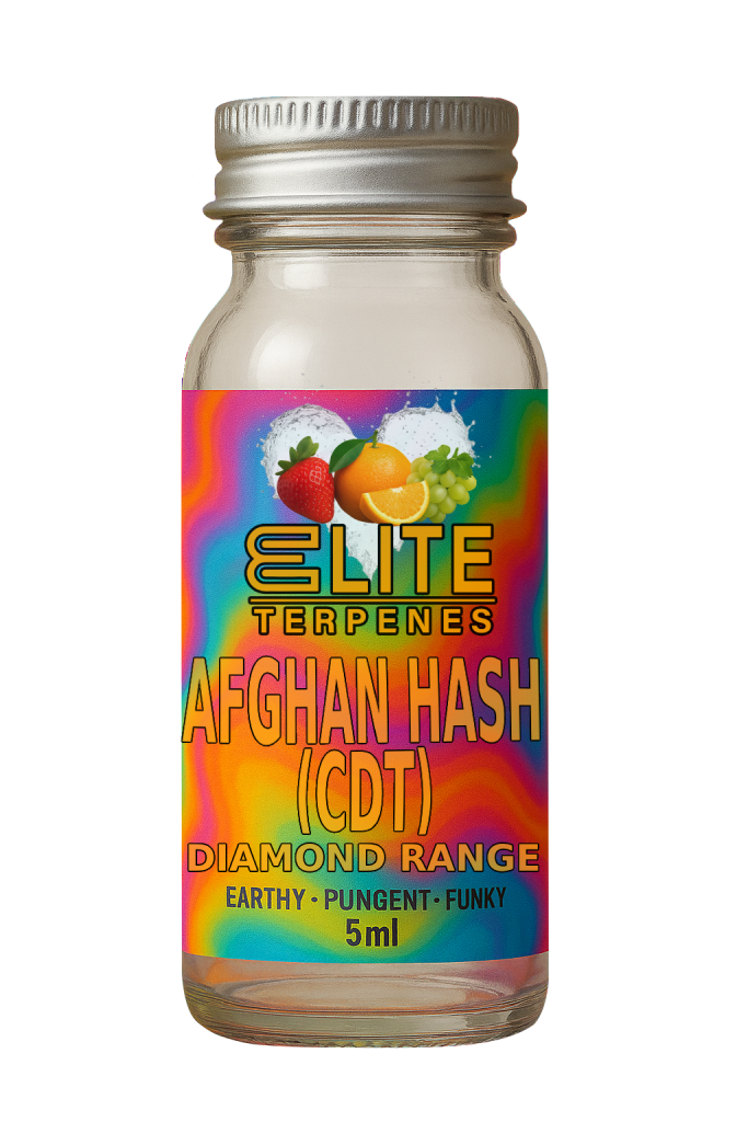 Afghan Hash (CDT) Terpene presents a deep, rich flavor with earthy resin, spicy incense, and warm herbal notes, finished with a classic hashish-like musk and subtle sweetness.