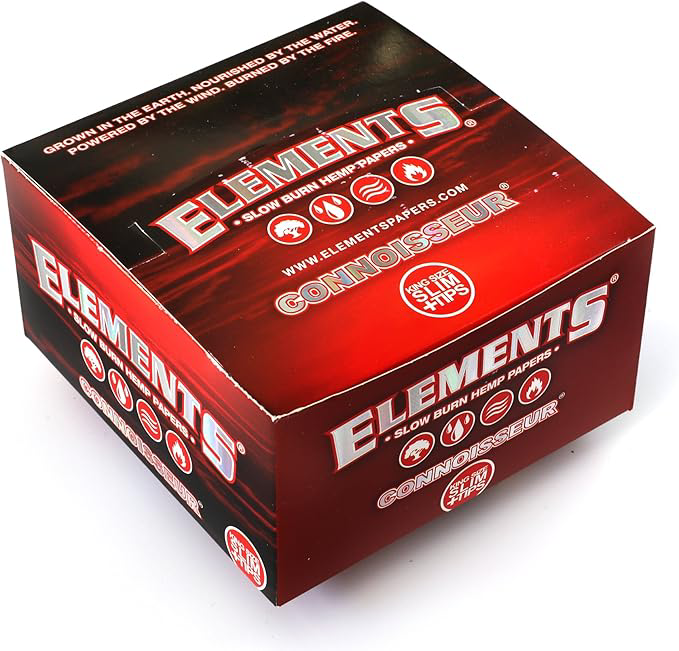 Elements Red Connoisseur King Size Slim and Tips Box – 32 leaves